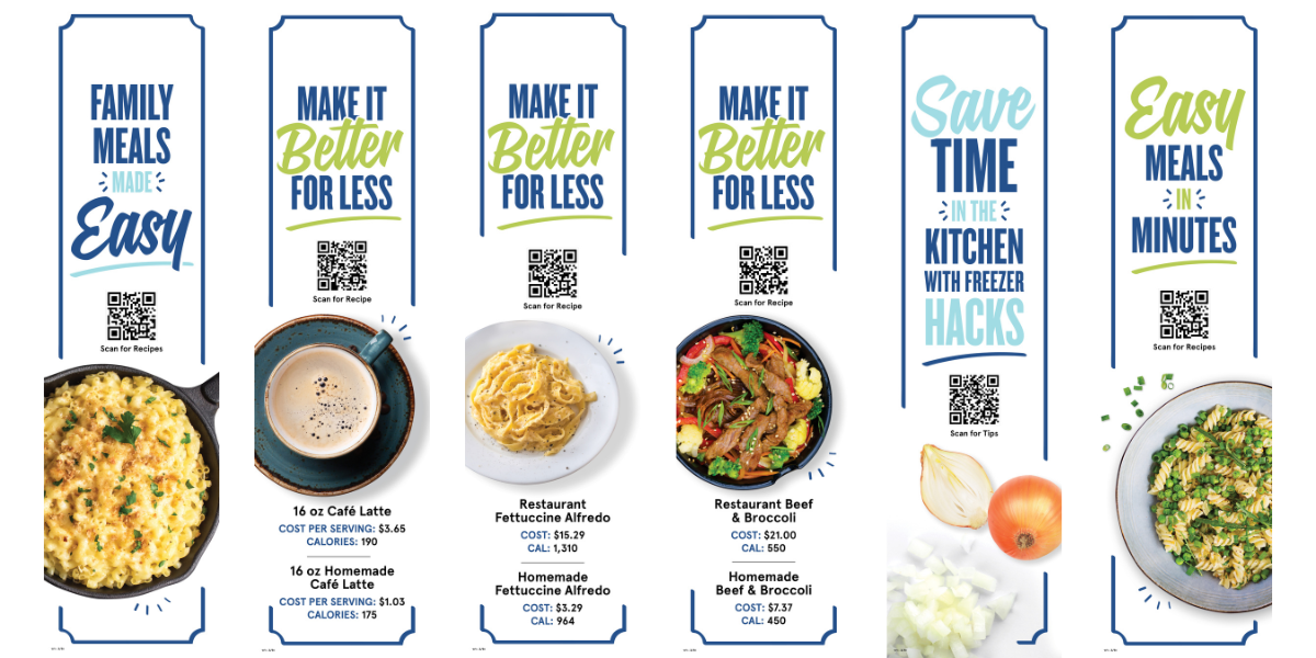 In addition to marketing these meal solutions on social media, signage, recipe cards, and cross-merchandising can call attention to your offerings inside the store.