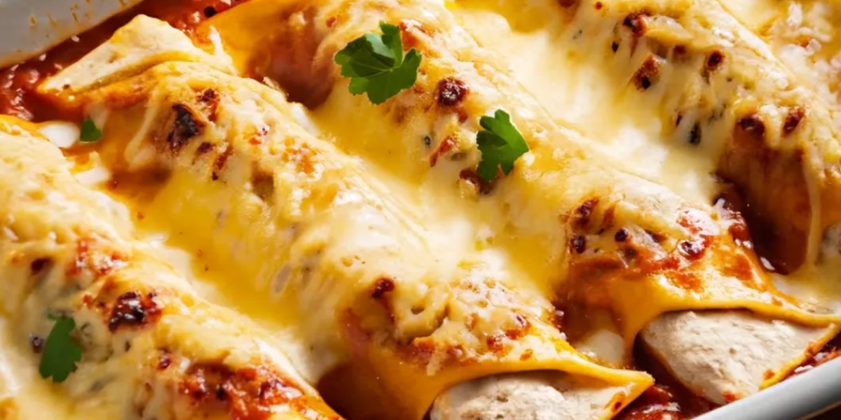 Delicious baked chicken enchiladas recipe with cream cheese, taco seasoning, black beans, and shredded cheese. Quick and easy to prepare for a hearty family meal.